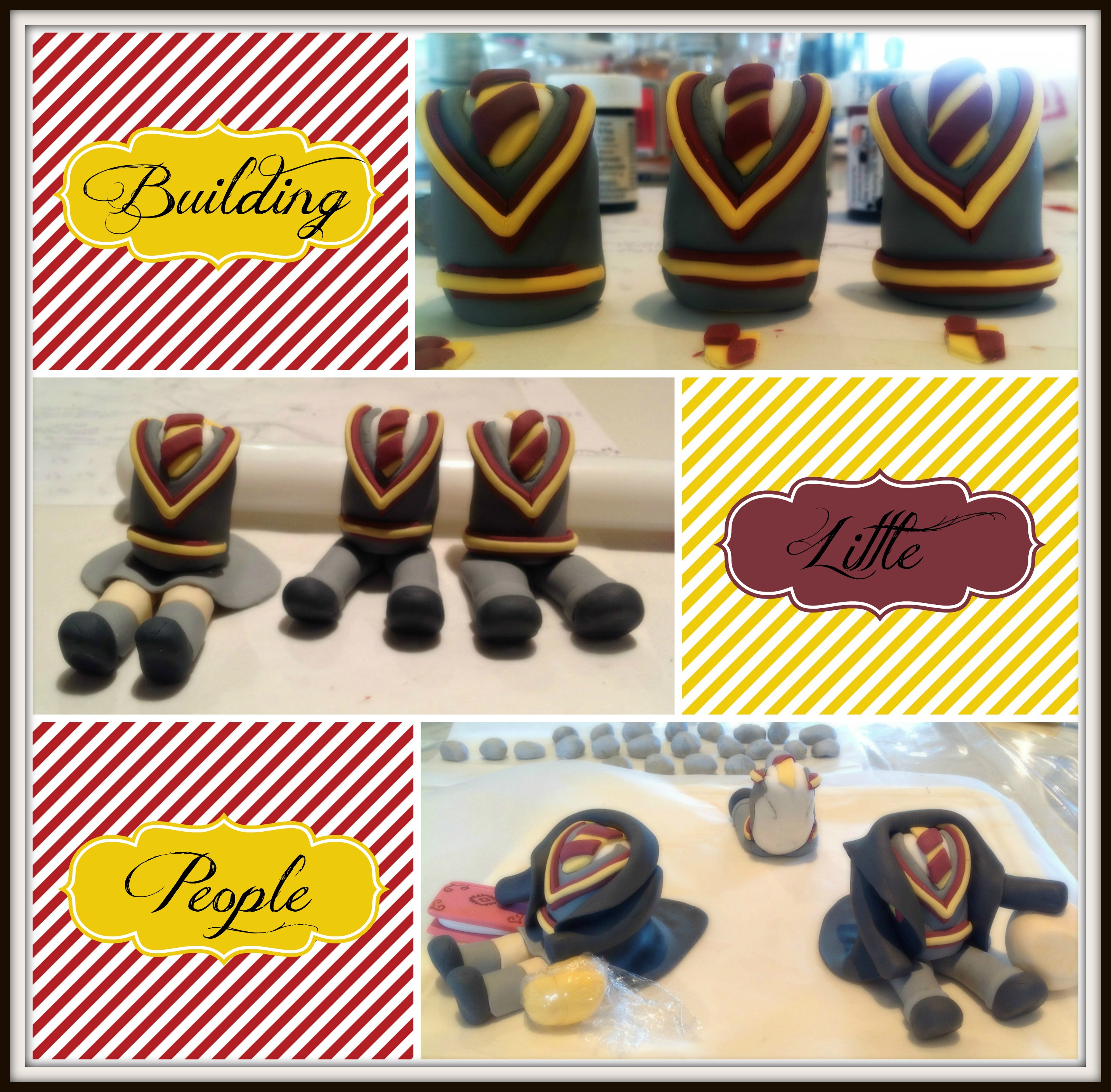 I wanted to try my hand at making little fondant people again – I definitely needed more practice after my incredible shrinking pirate! It was a pretty slow and painstaking process, but layer by layer, Harry, Hermione and Ron all started to take shape.