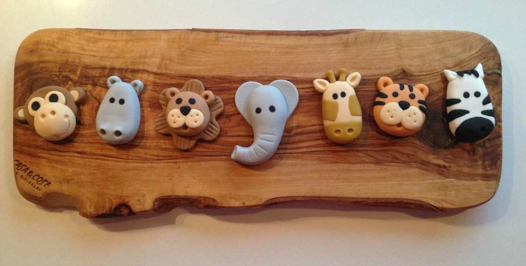 A while ago I offered to make some fondant decorations for a friend to put on her daughters’ birthday cake. There were only two days to go until her party so I said nothing too big that would take a long time to make and dry. Her first thoughts were athletics and gymnastics, which scared me when I imagined making little people in a rush. But then she told me her daughter also loved jungle animals, so we went with that theme – much easier to make animals than people!